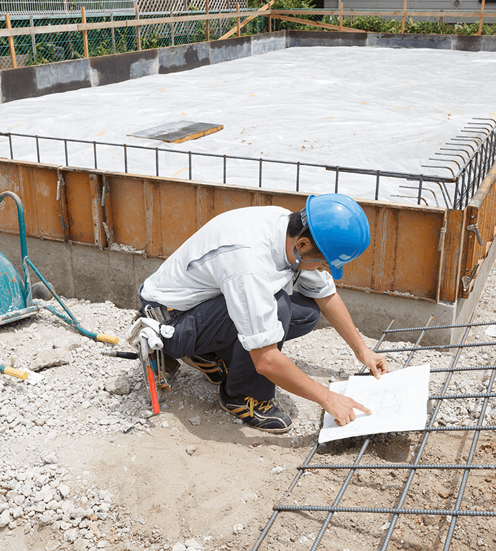 文字どおり建物の型を造る作業で、この型自体に曲がりやゆがみ、凹凸があると、躯体そのものに曲がりやゆがみが残ってしまいます。